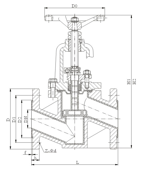 結構特點 1、截止閥襯里系列為J41F46直通式,J45F46直流式,J44F46直角式。具有結構緊湊,啟閉靈活,耐腐蝕性能強,行程短等優點,被廣泛應用在化工,石油等管路中做截斷介質用。 2、閥瓣和閥桿設計為一體結構,用以防止由于管路壓力波動造成內件沖出閥體的可能性,保證了使用的安全性。
